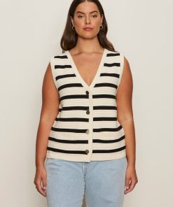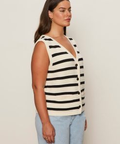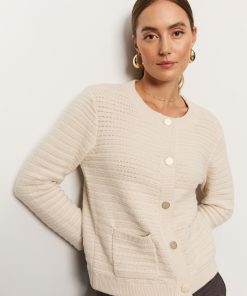 Sanctuary Clothing Clothing Jackets & Outerwear Open Knit Sweater Jacket Chalk / Black Stripe