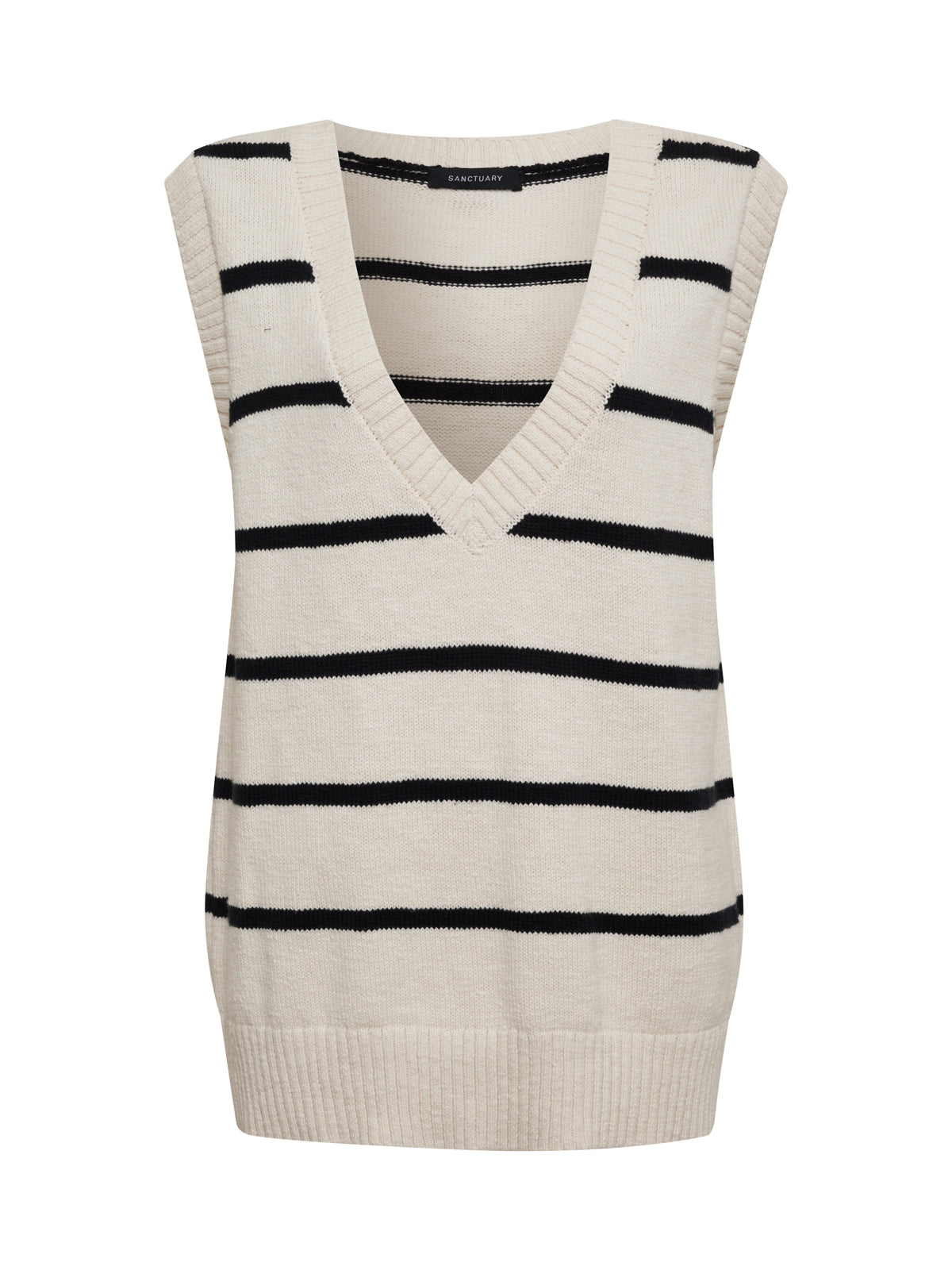 Sanctuary Clothing Clothing Sweaters & Cardis Boyfriend Sweater Vest Chalk With Black