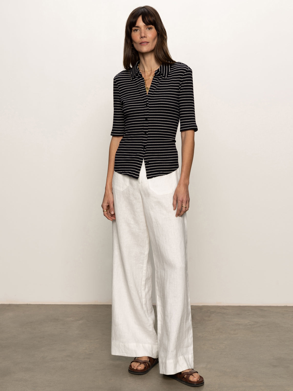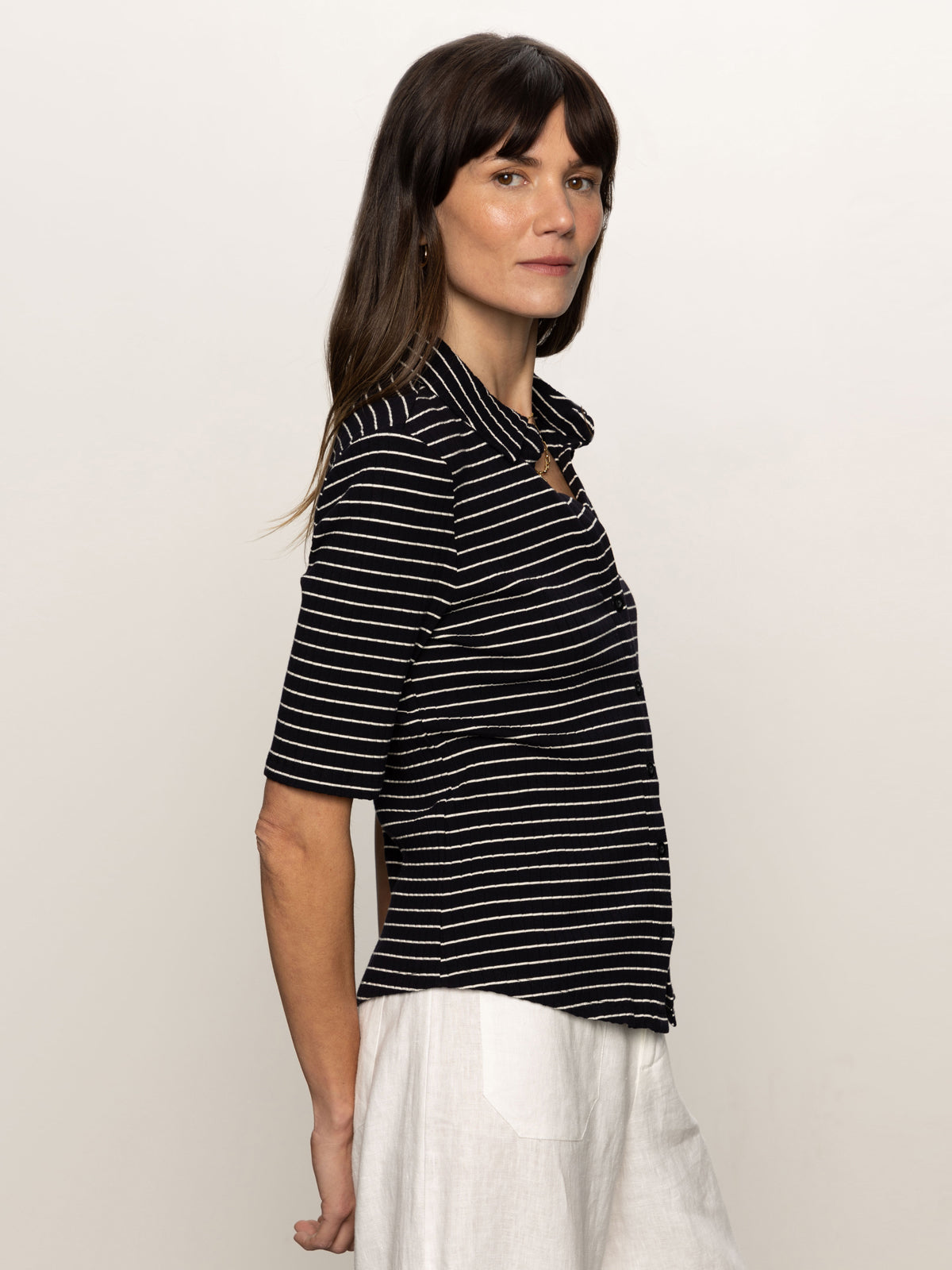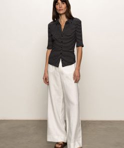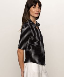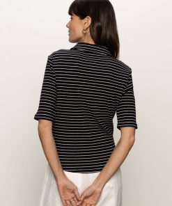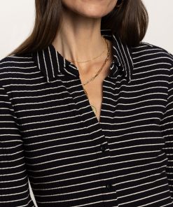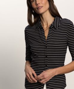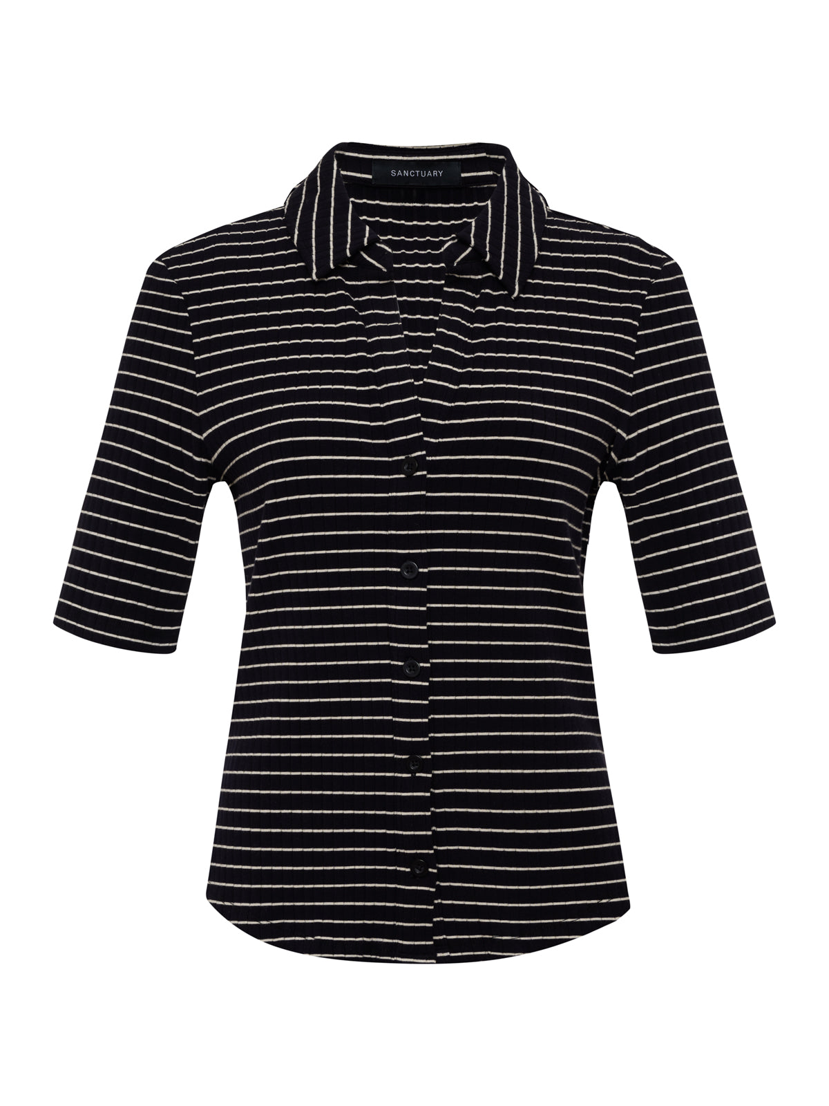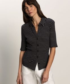 Sanctuary Clothing Clothing Sweaters & Cardis Half Sleeve Ribbed Knit Shirt Black Chalk Stripe | Black Chalk Stripe