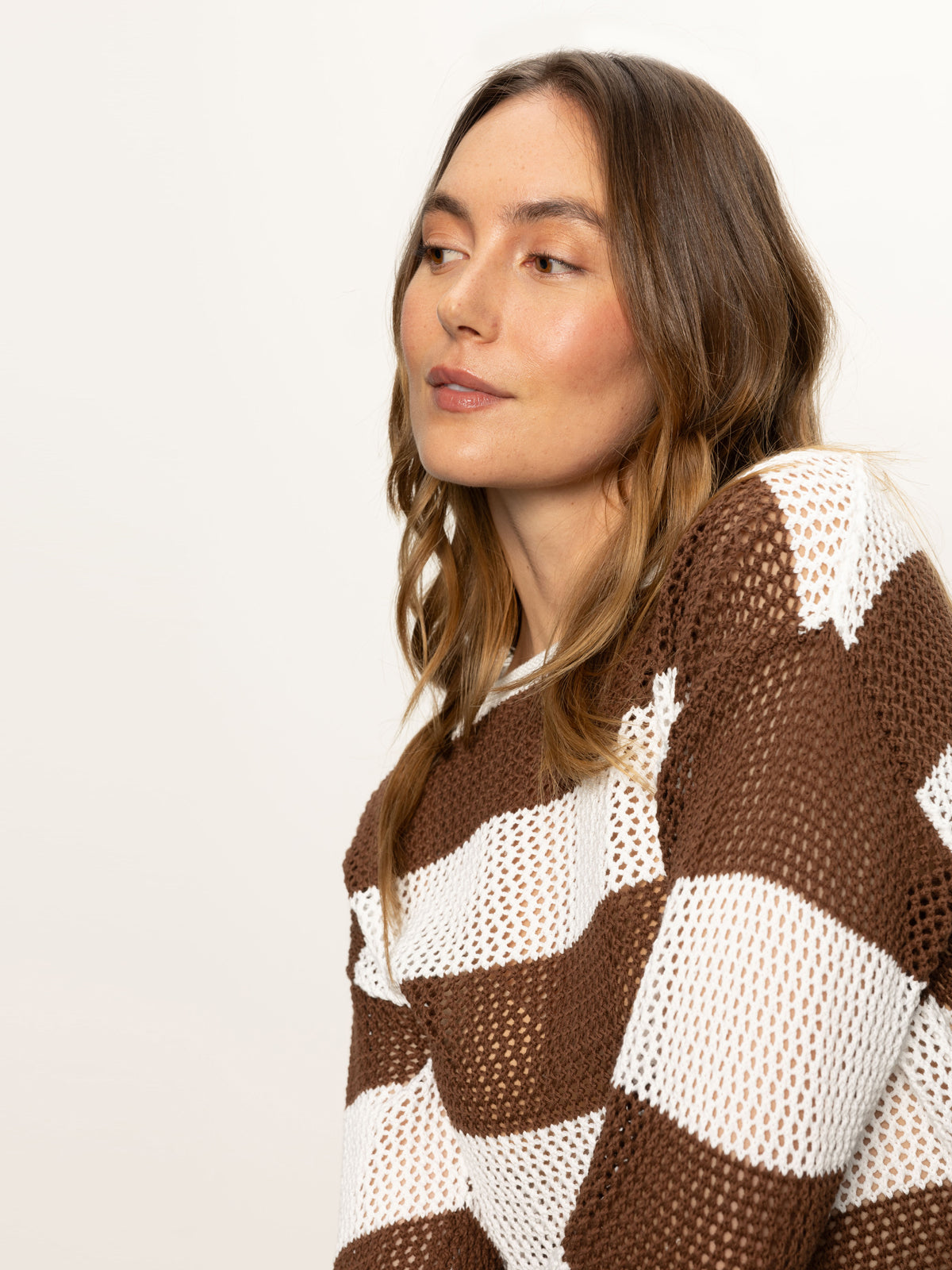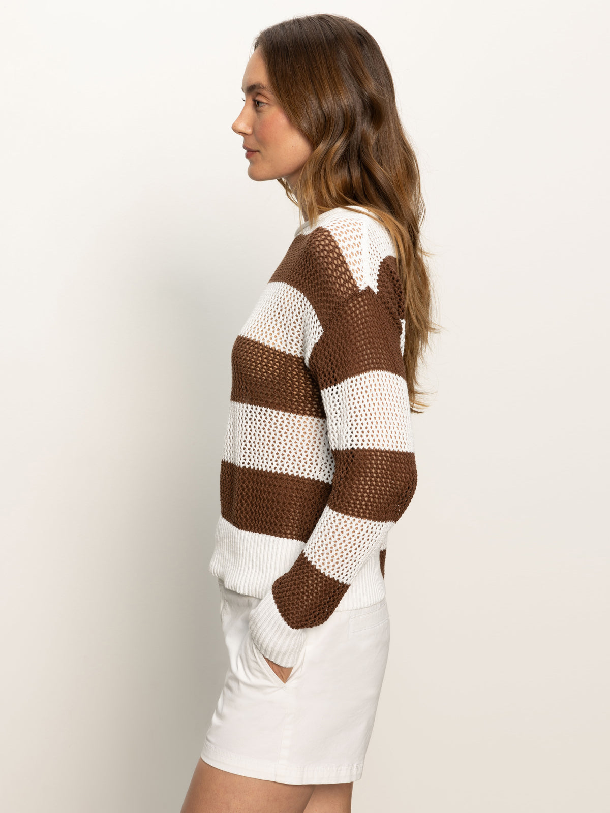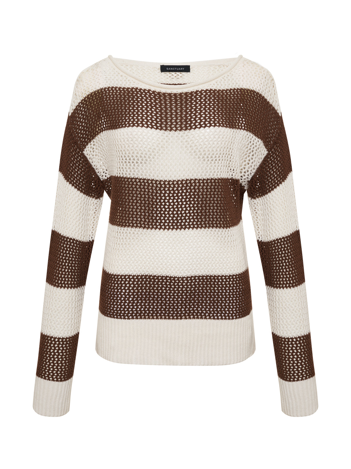 Sanctuary Clothing Clothing Sweaters & Cardis Open Knit Sweater Chalk / Sepia Stripe | Chalk Sepia Stripe