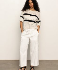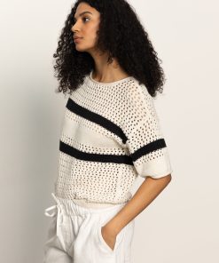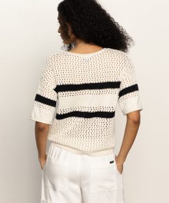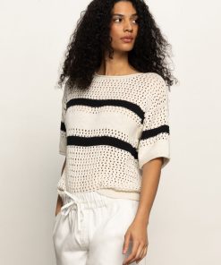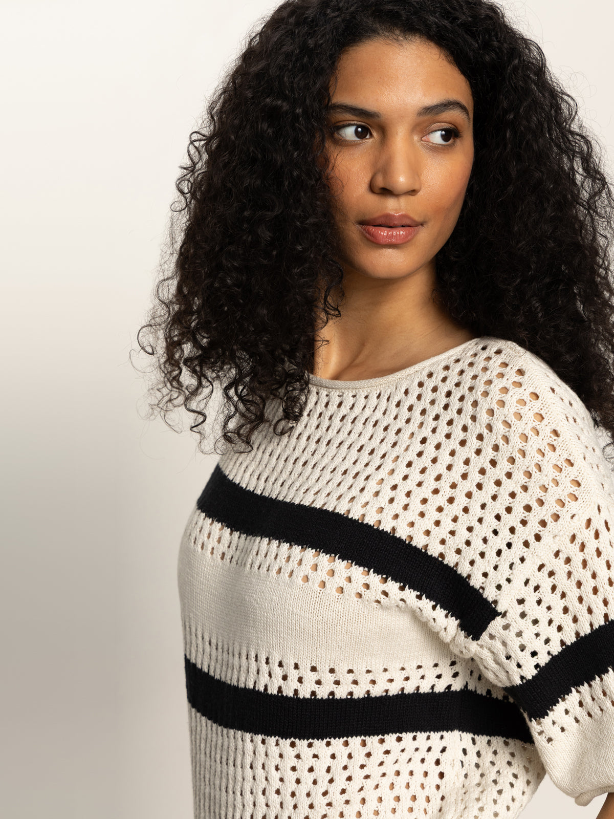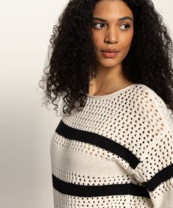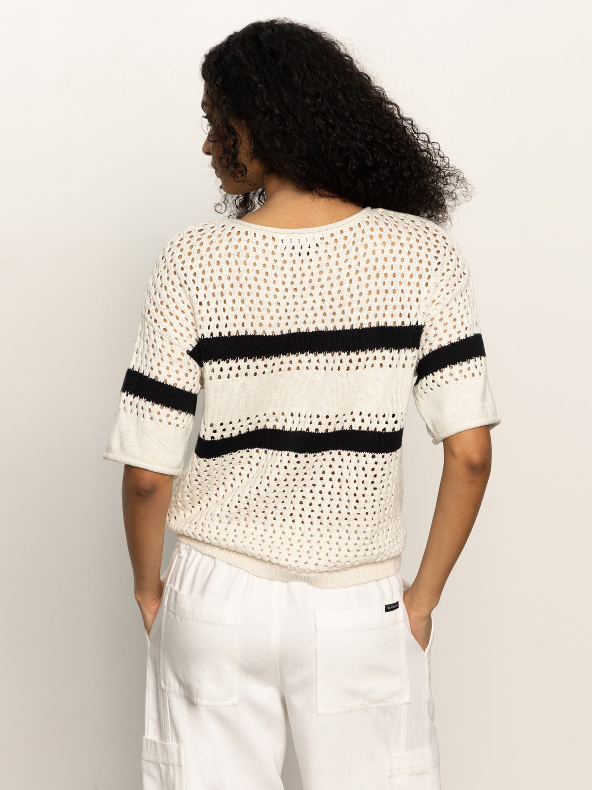 Sanctuary Clothing Clothing Sweaters & Cardis Openwork Tee Black Chalk Stripe