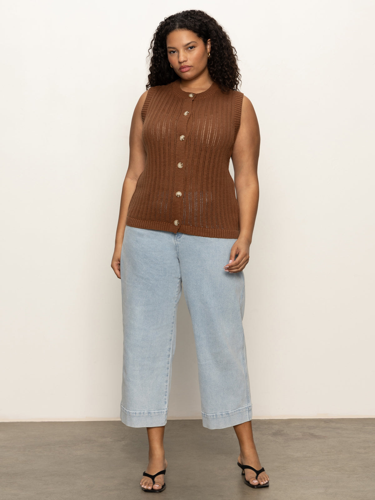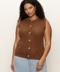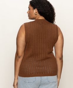 Sanctuary Clothing Clothing Sweaters & Cardis Pointelle Shell Sweater Sepia Extended Sizing | Sepia