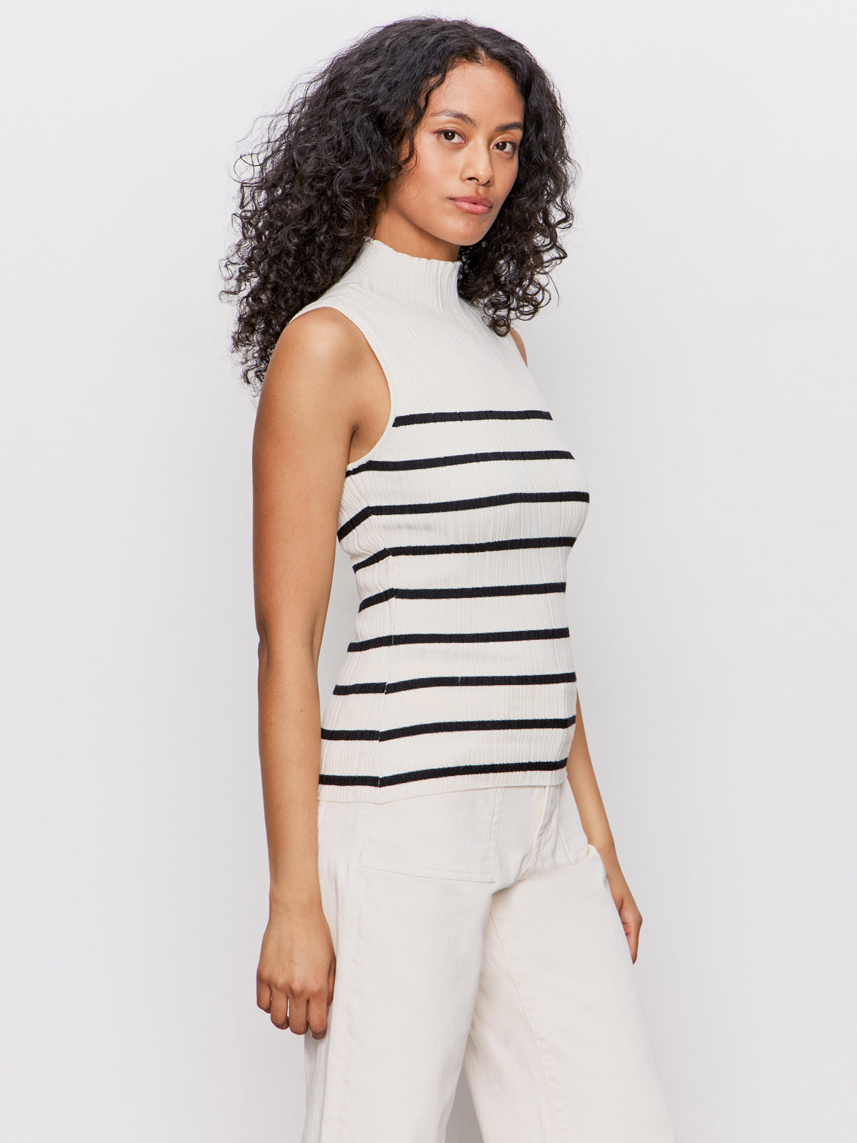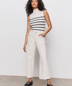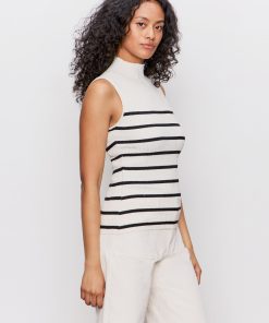 Sanctuary Clothing Clothing Sweaters & Cardis Ribbed Funnel Neck Top Light Oat/black | Light Oat & Black 3