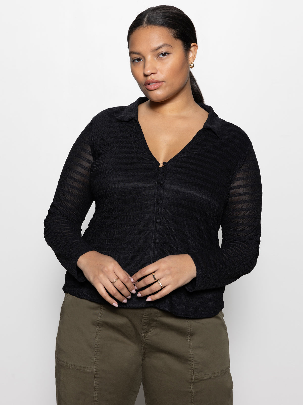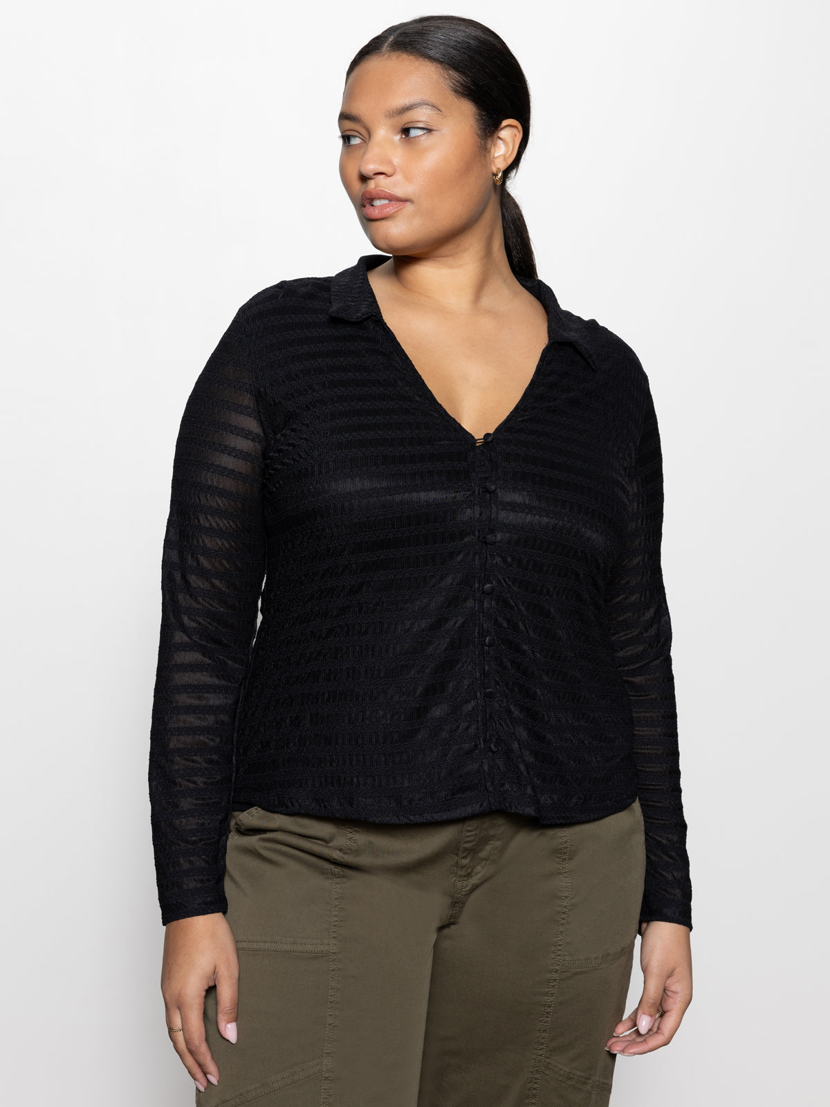 Sanctuary Clothing Clothing Tees & Tops Mesh Lace Shirt Black Extended Sizing