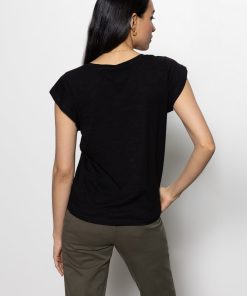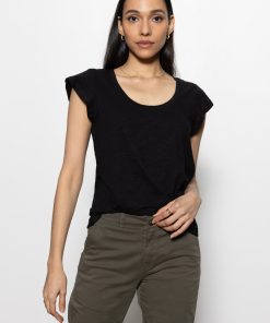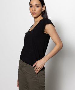 A scoop neck and Flutter cap sleeves add understated sophistication to this essential slubbed cotton t-shirt.