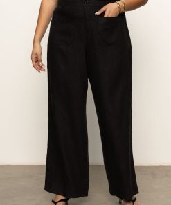 Sanctuary Clothing Clothing The Linen Marine Wide Leg Semi-high Rise Pant Black Extended Sizing | Black